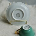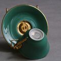 深みのあるエメラルドグリーンの釉薬に、内側と縁、ハンドルに施されたゴールドが美しく映え、クラシカルでありながら洗練された印象です。小ぶりなサイズ感は、上品で特別感があり、日常のひとときを少し有意義なものにしてくれそうです。Limogesならではの繊細な磁器の質感と、フランス陶磁器の長い歴史を感じられる一客。