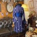 藍紫の夜空に瞬くドットと小花、幻想的な和のドレス