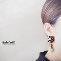 刺繍糸×ゴールドカラーのアクリルパール×ウッドパーツの異素材を組み合わせた、優しく揺れる刺繍イヤリングです。