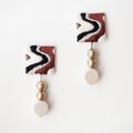 ブラウン系ボルドー 刺繍ピアス マーブル模様 秋冬 ラッピング可 大人カジュアル アクリルパール