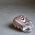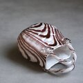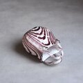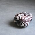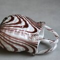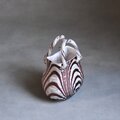 白いガラスにボルドーのラインがリズミカルに重なり、まるで彫刻のような存在感を放ちます。溶け合う色ガラスが生み出すマーブル模様は、すべて職人の手仕事によるもの。