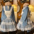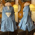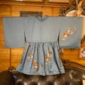 【 付け下げ着物 ミニ丈 ワンピース ドレス 和ロリ 2部式作り帯 京袋帯 リメイク 和洋折衷 洗える 化繊 ハンドメイド レトロ 古着 単衣 freeサイズ 夢見るようなブルー MKW-61 】