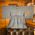 ❁︎お着物の形を最大限に活用した特性とスカートのふんわり感を演出するためのギャザー仕立てを行っている為、ウエスト付近の布が厚くなっています。付属の帯ベルト等を装着するとお写真の様に目立ちません。