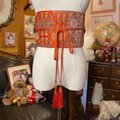 【名古屋帯リメイク サッシュベルト 飾り帯 和洋折衷 ウエストマーク ハンドメイド レトロ 古着 LL〜4L 煌めきと奥行き GOB-21】