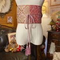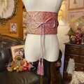 【名古屋帯リメイク サッシュベルト 飾り帯 和洋折衷 ウエストマーク ハンドメイド レトロ 古着 LL〜4L ペイズリーや唐花を思わせるような、繊細で複雑な古典織り柄 GOB-23】
