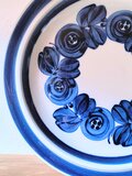 紺碧の釉薬で描かれたアネモネの花のモチーフは、一つとして同じものがなく、力強い筆遣いと釉薬の濃淡が豊かな表情を生み出しています。