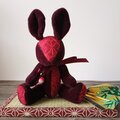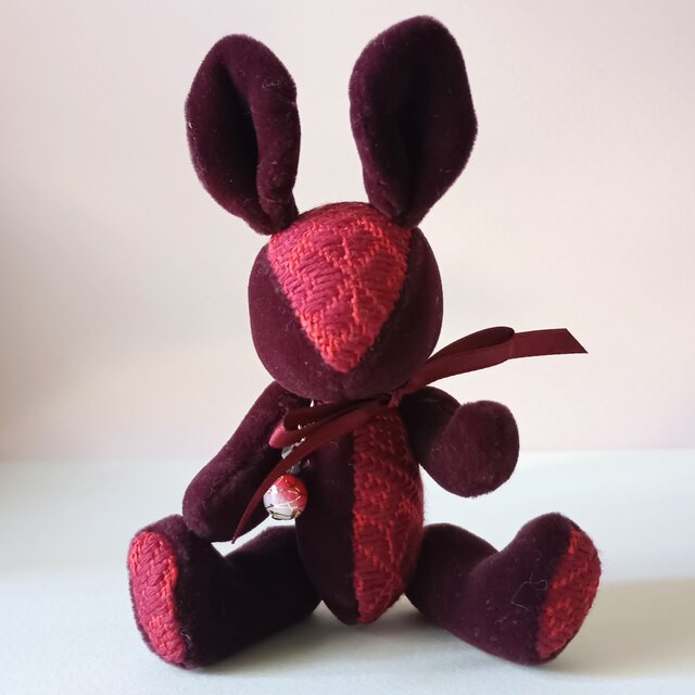 【1月誕生石・オーダーメイド】こぎん刺しぬいぐるみ 総刺しこぎんウサギ ガーネット
