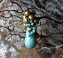 青磁色ウエディングビーズとたわわな鈴&アマゾナイト、アフガンパーツのペンダントトップ