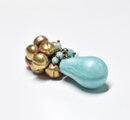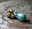 青磁色ウエディングビーズとたわわな鈴&アマゾナイト、アフガンパーツを繋いだペンダントトップです。