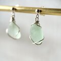 《Silver925》小さなミントグリーンシーグラスが揺れるスタッズピアス