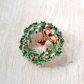 リボンが付いた西洋柊のクリスマスリースがデザインされたヴィンテージブローチです。