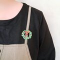 christmas holly wreath ヴィンテージブローチ