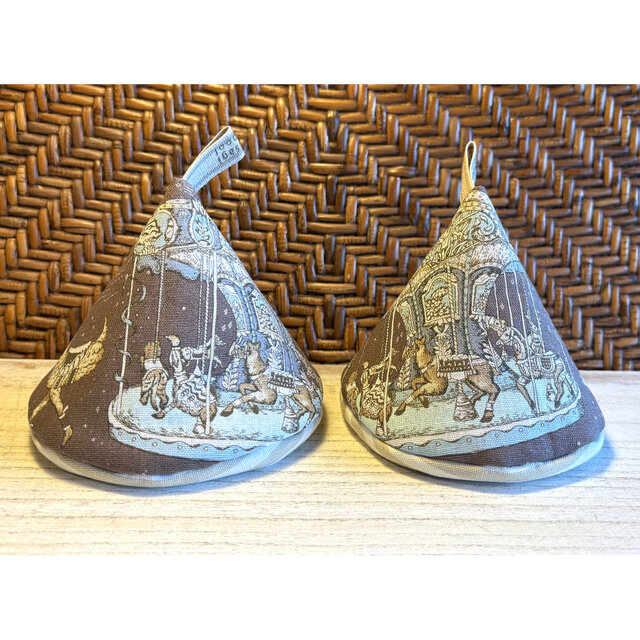 夜空のメリーゴーランド模様ブラウンA 大 三角鍋つかみ