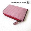 〇薄くしなやかなピンクの型押しクロコにワインカラーを合わせてみました。