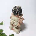 頭上に小さな花器をのせて頬杖をついている、お天気をモチーフにした陶人形を制作してみました。