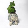 頭上に小さな花器をのせて頬杖をついている、お天気をモチーフにした陶人形を制作してみました。
