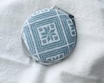 青森県津軽地方の伝統工芸である、こぎん刺しの技法を用いた、コンパクトミラーです。