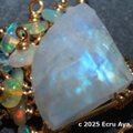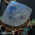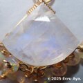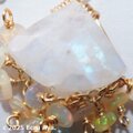 素材:宝石質レインボームーンストーンAAA フリルカット、宝石質エチオピア産プレシャスオパールAAA ロンデル、宝石質アクアマリンAAA ドロップブリオレットカット、宝石質ブルーカルセドニーAAA ラウンドカット、その他すべて14kgf