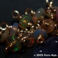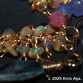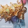 シンプルにアクアマリンのスピンドルカットで楽しんでいただいて、気分で遊色ギラギラのエチオピア産プレシャスオパールのロンデルをたわわに、そしてNoelっぽいタンザナイトと、発色の美しいインペリアルロードナイトで飾ったチャームを楽しんでいただけましたら嬉しいです