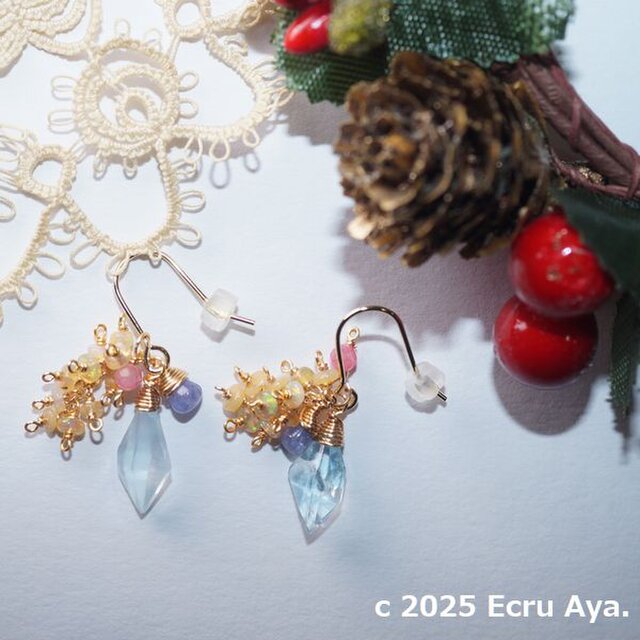 #Ecru #天然石 #イヤリング #ピアス #Noel #Christmas #アクアマリン #スピンドルカット #2way #オパール #エチオピア産プレシャスオパール #プレシャスオパール #インペリアルロードナイト #タンザナイト