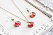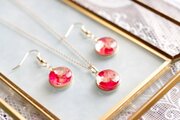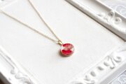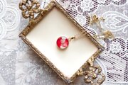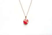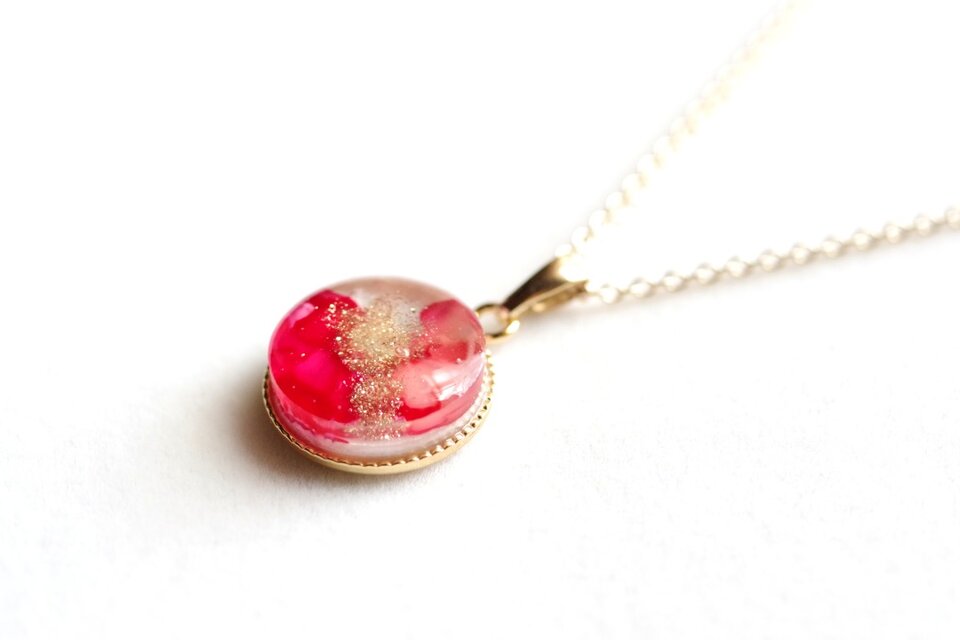 二種類のピンクで描いた模様が可憐な、小粒のレジンのペンダント。