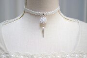 中心の花芯とコットンパールの光沢のある輝きが上品なチョーカー。