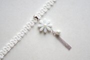 揺れるコットンパールとフリンジが愛らしく、白のレースとリボンがより清楚な印象を与えます。