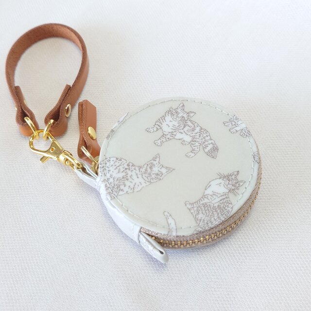 リバティプリント つや消しラミネート(ビニールコーティング生地)〈meow〉(ミャオウ)を使用した小銭入れです。