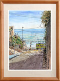 水彩画原画 江ノ電 日和・七里ガ浜の海 #704