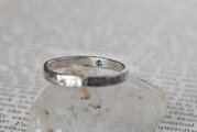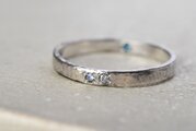 シンプルな平打ちの槌目リングの表面にブルームーンストーンとダイアモンド・裏面にロンドンブルートパーズを留めて制作を行いました。さらりと身に着けやすくも他にはない特別感を感じられる作品に仕上げることができました。