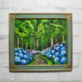 【作品名】:油絵【梅雨の紫陽花の道】