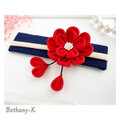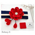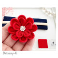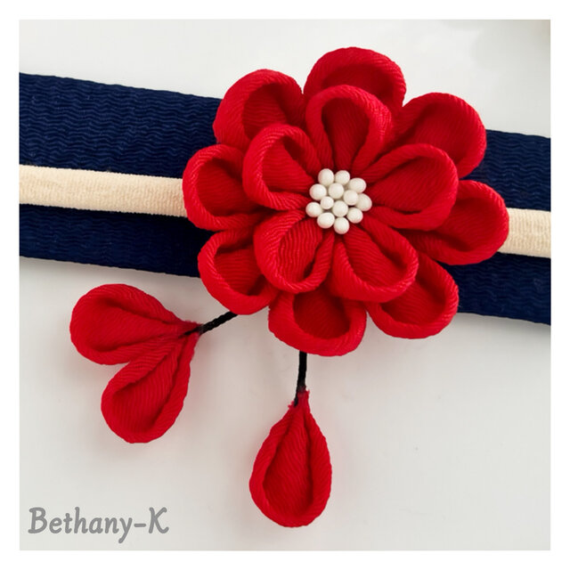 初節句・お食い初めに人気!◆4.5cmカメリア髪飾り(下がり付き)◆赤色のママでも簡単につけられるつまみ細工