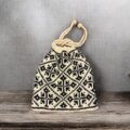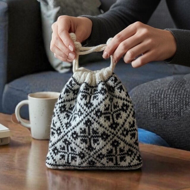 シェットランドウール100%の毛糸で北欧伝統柄を編み込んだ巾着です。