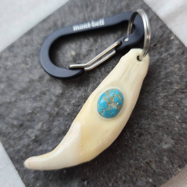 こちらは【月輪熊の牙 ローンマウンテンターコイズのキーホルダー】になります。