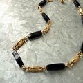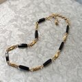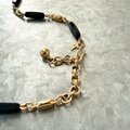 ブラック長方形アクリルビーズとゴールドトーンショートネックレス。