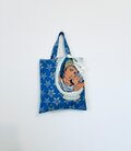 ポートレートを配したアフリカンファブリックのトートバッグ(S)。