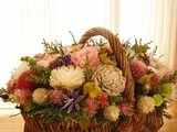 ナチュラルな花籠にプリザーブドローズをメインに