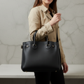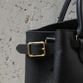 シボ革イタリアン植物タンニンなめし革レザートートバッグ|A4対応・500mlボトル収納|サイドベルト調整|オンオフ使える上質ブラック