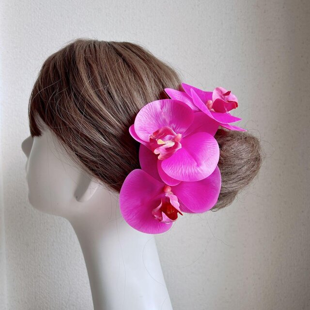 ローズピンクの胡蝶蘭のヘッドピース フラダンス フラ 髪飾り ハワイ挙式 グアム挙式 髪飾り 浴衣 リゾ婚 ピンク