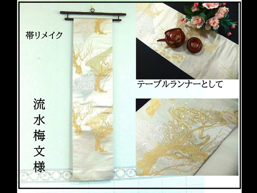 【(16)2011】94cm/流水花車文様/テーブルランナー/和風/帯リメイク返信遅くなり申し訳ありません。素敵なお品をありがとうございました。また機会がありましたら宜しくお願いいたします。
