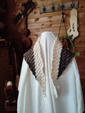 畑で自家栽培したコットンを手紡ぎした糸で編んだ、小さめの三角型ストールです。