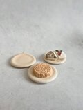 一つ一つ土の塊から形を削り出す小さな彫刻作品です。釉薬のムラを生かして柔らかく落ち着いた雰囲気に仕上げています。
