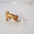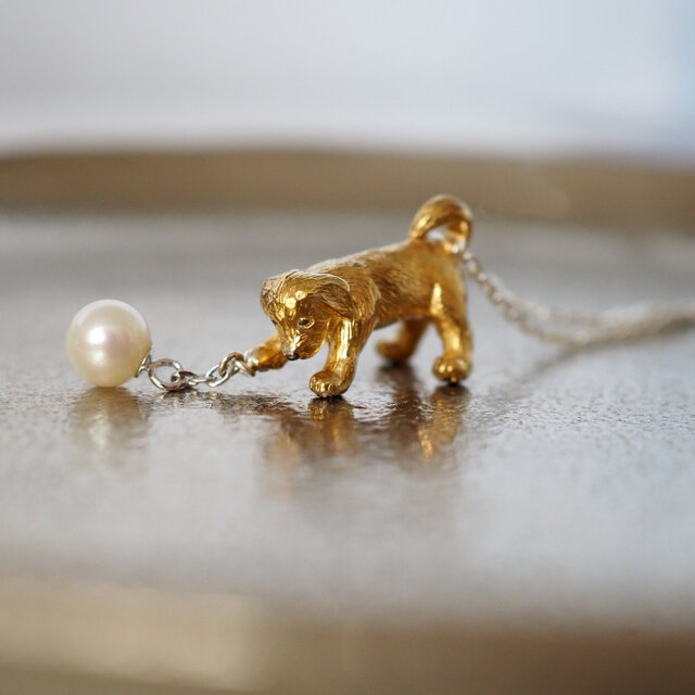 ボールで遊ぶ垂耳犬のペンダント ゴールド 淡水パール