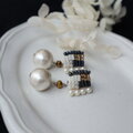 Mosaic モザイク記憶ピアス|ビーズ刺繡|カスタムピアス|コットンパール|オウカノモリ/ouka no mori