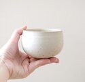 ころんと丸いお湯のみの形に成形後、ほんのり生成色のマット釉をかけて焼き上げました。