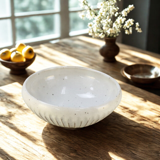 美濃焼の伝統と職人技が息づく「粉引削ぎ目」シリーズの盛り鉢。