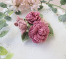 蕾は淡いアンティークモーヴピンク、小さなお花はペールピンクのフランス製の刺繡糸で編んでおります。