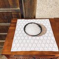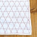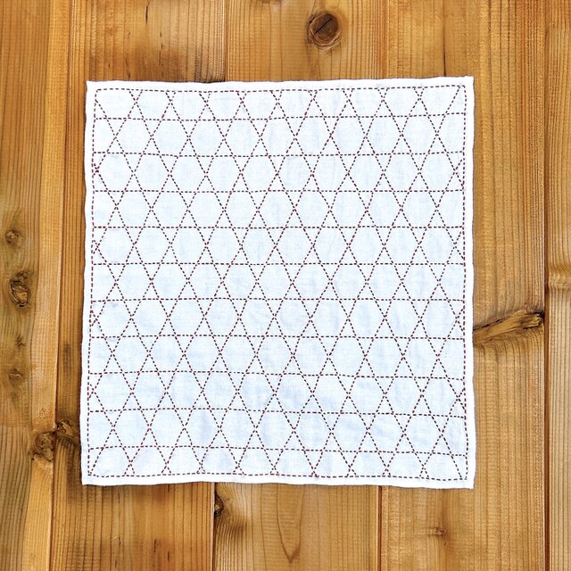 綿100%のさらしの布に、伝統柄を赤糸で刺しました。