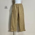 【厚手リネン】◆ポップスリットパンツ ロング◆マスタード◆フリーサイズ(ウィンターリネン、15番手リネン100%)