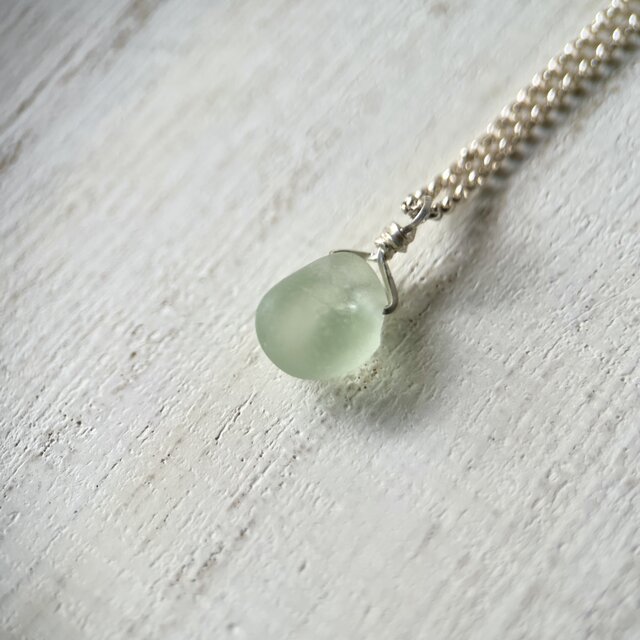 《Silver925》爽やかミントグリーンシーグラスビーズの雫ブレスレット